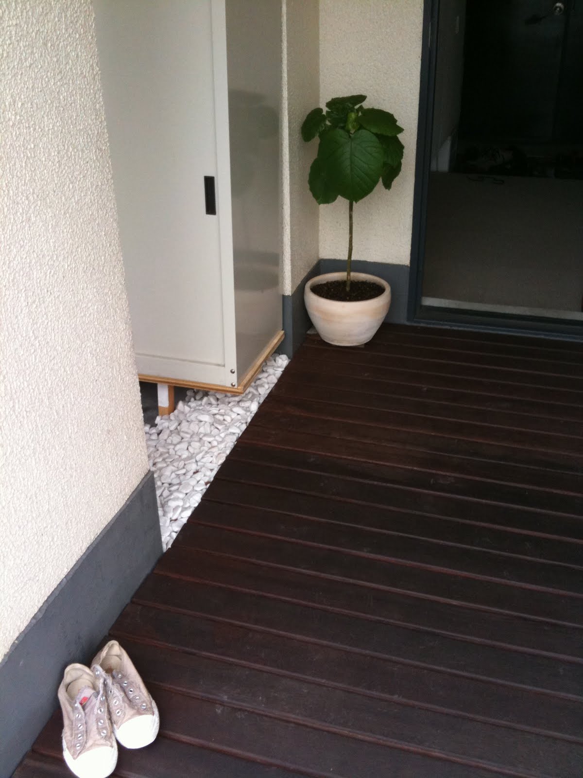 エアコンの室外機が置いてあった足場(?)の高さに合わせて板を設置します。